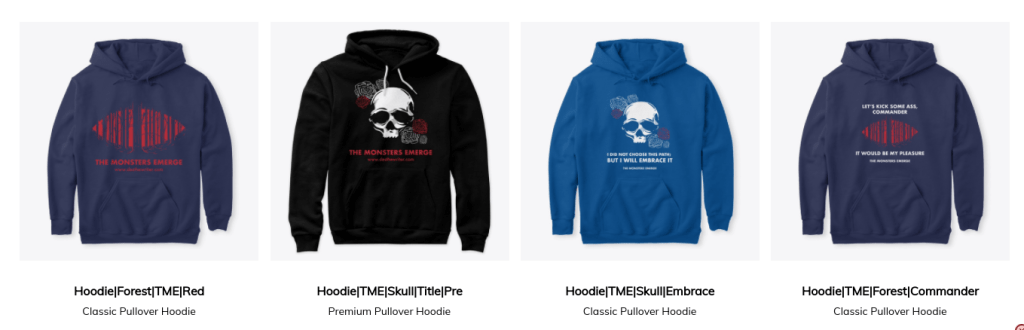 You will find hoodies, shirts, mugs, phone cases, posters, joggers, totes, and more!